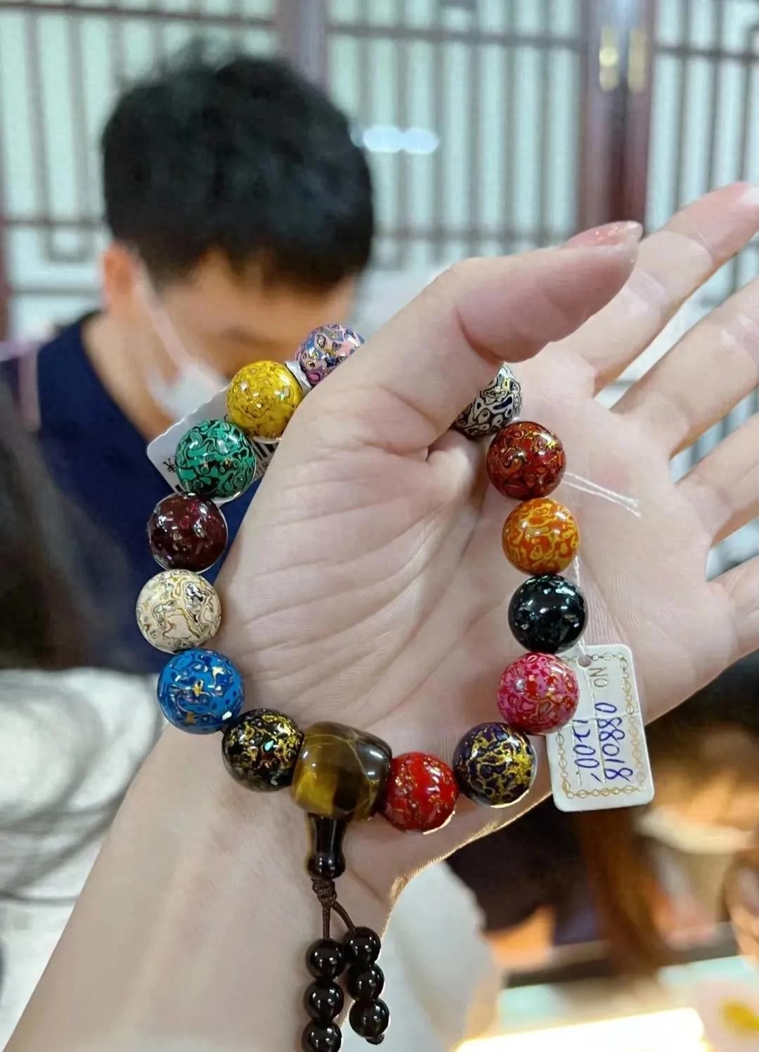 雍和宫手串的材质也很讲究,有普通的琉璃、南红、等,还有景泰蓝的。其中带香灰的景泰蓝款式最贵,一千块钱左右。普通手串就几百元,所以说,来一趟北京,带几串手串回去送亲朋好友很有纪念意义。