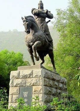 7、冉闵,冉魏政权的君主,左操双刃矛,右执钩戟",骑赤龙,一生死于其手下的敌军以万计,曾创造过以弱击强九战九胜的战例。
