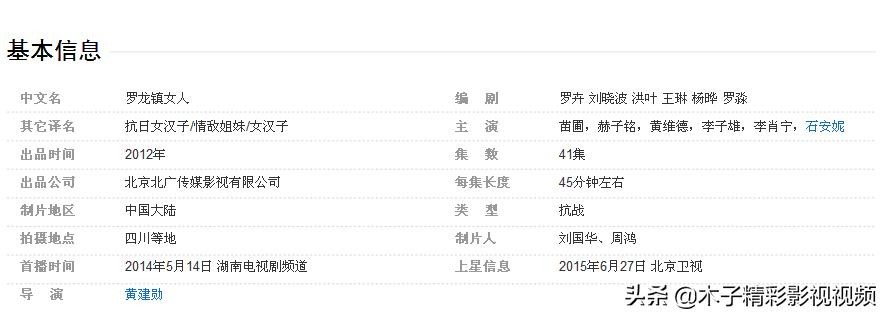 《罗龙镇女人》是由北京北广传媒影视有限公司等出品的抗战剧,由黄建勋执导,苗圃、赫子铭、黄维德、李子雄、李肖宁主演 。