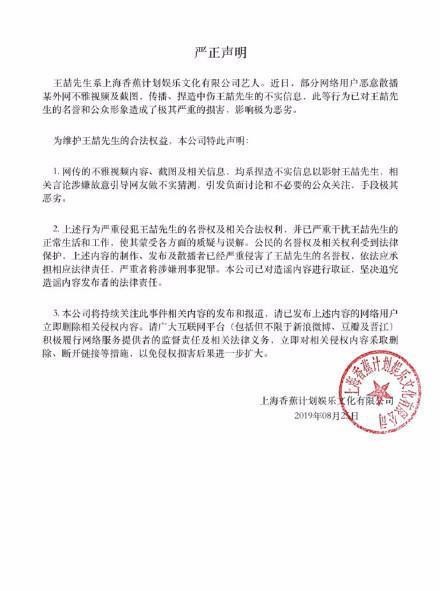 从该公司的声明中不难看出,网络上所有有关艺人、王喆的言论均属谣言。希望广大网友提高警惕,不要被谣言所迷惑。