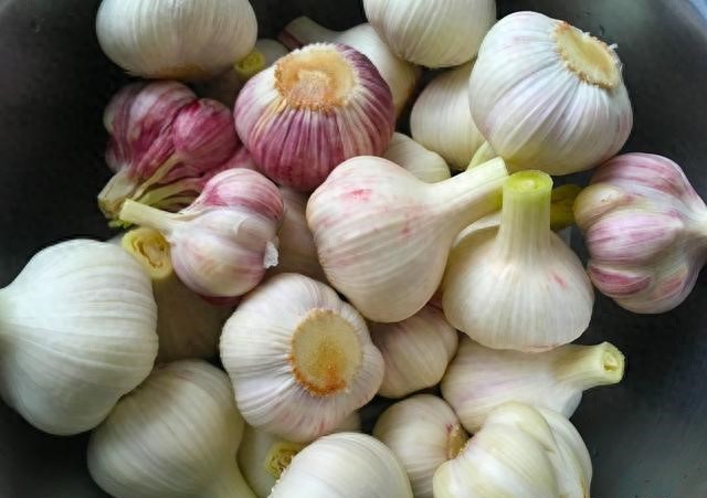 1、 新蒜在清水中清洗干净,把外面的皮剥掉,露出里面的蒜瓣;