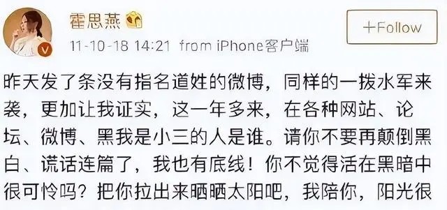 在黄奕与霍思燕的骂战中,黄毅清更是亲自站出来为她辩护,狠狠斥责了霍思燕。