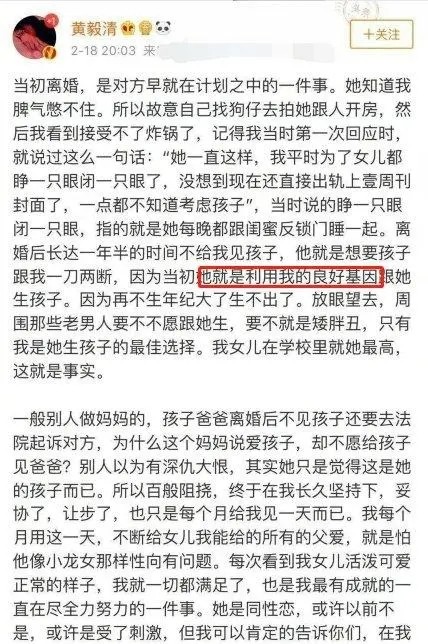 他不仅家暴黄奕,还与她争抢女儿的抚养权。
