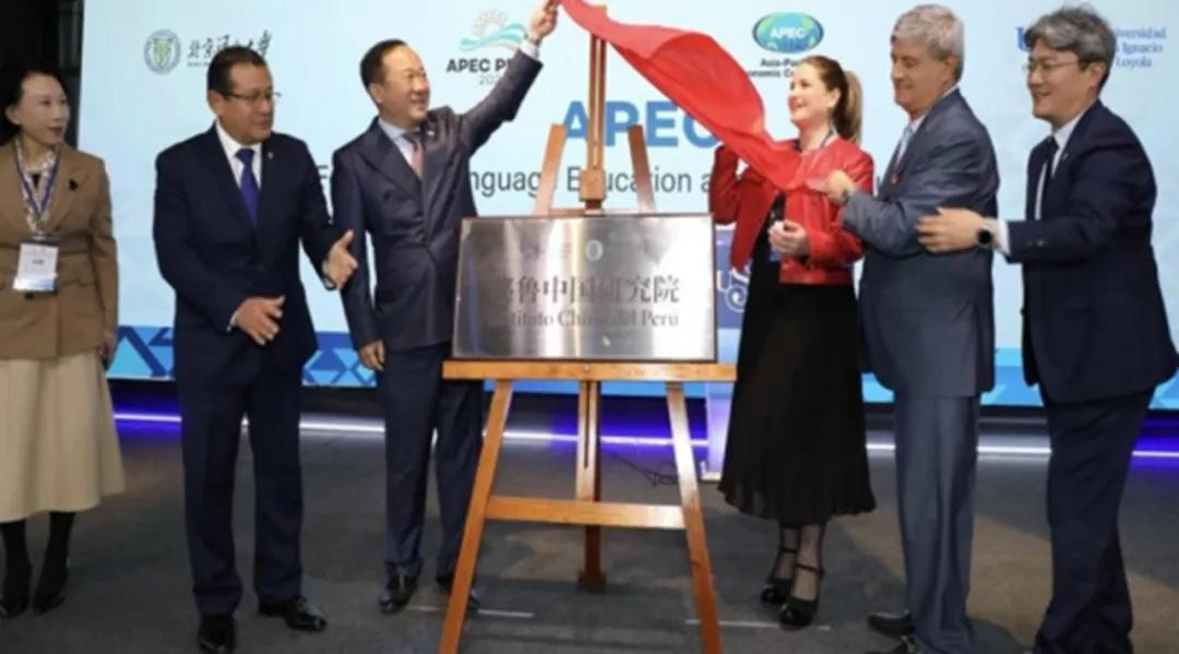 当地时间11月14日,我校与秘鲁圣伊格纳西奥德洛约拉大学联合主办的第三届亚太经合组织(APEC)教育论坛在秘鲁首都利马成功举行。在论坛开幕式上,段鹏校长与秘鲁国会主席爱德华多·萨尔瓜纳、圣伊格纳西奥德洛约拉大学执行董事卢西亚娜·德拉富恩特一同为秘鲁中国研究院揭牌,与秘鲁前副总统、圣伊格纳西奥德洛约拉大学创始人劳尔·迭斯·坎塞科·特里共同签署《中华人民共和国北京语言大学与秘鲁共和国圣伊格纳西奥德洛约拉大学合作建设秘鲁中国研究院框架协议》,得到11个经济体的政要、官员、使节、大学校长以及各领域专家学者的共同见证。段鹏校长在论坛开幕式上作题为《教育互助 文化共兴 共筑亚太繁荣发展之路》的主旨发言。