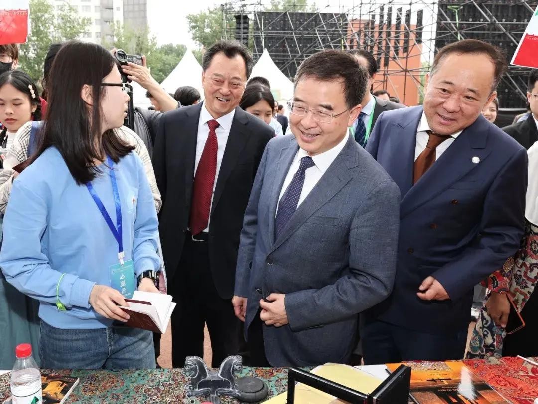 同日,2024年北京高校国际文化月在北京语言大学启动,北京市委教育工委副书记、市教委主任、市政府教育督导室主任李奕,北京语言大学党委书记倪海东、校长段鹏等出席启动仪式。随后,倪海东书记、段鹏校长陪同李奕主任参观文化节展棚区,并与多位外国大使亲切交谈。