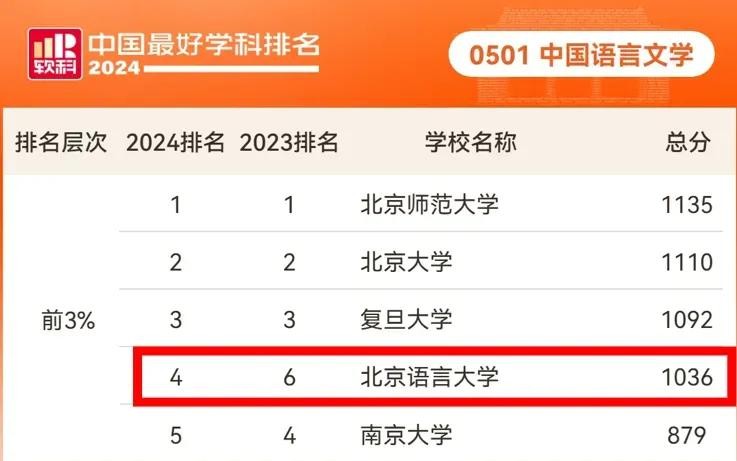 10月15日,高等教育评价专业机构软科正式发布了“2024软科中国最好学科排名”。我校中国语言文学学科位列全国第4名,相较去年前进了2名,跻身全国高校前3%,取得显著进步。