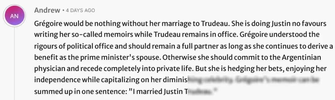 娱乐圈的掌中宝,今日头条来了!哇哦,你绝对猜不到,这个消息简直让人瞠目结舌!没想到!Sophie自曝与特鲁多离婚原因!没错,没听错,加拿大总理特鲁多的妻子Sophie,竟然在最近的一次采访中揭露了他们离婚的原因!这到底是怎么一回事?是不是绯闻缠身?是不是政治原因?还是……有人三观不合?别走开,我来告诉你一切!这可是个大事件,让我们揭开这个娱乐圈里的一段惊心动魄的婚姻故事!