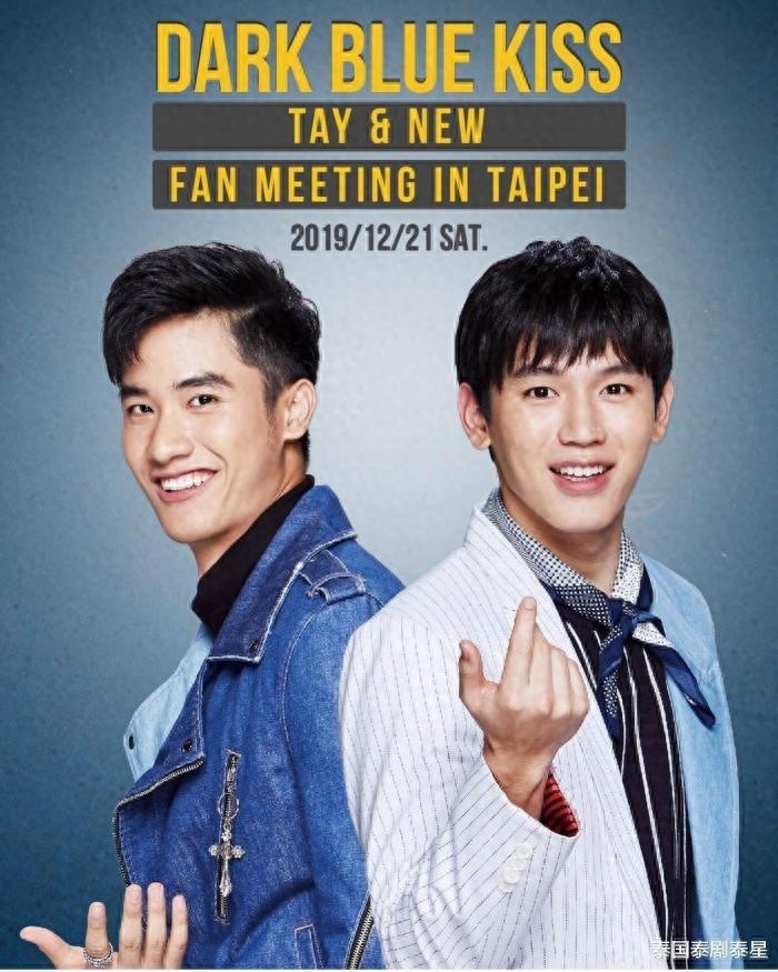 泰国BL剧知名男星Tay、New因多次合拍剧累积高人气,12月21日来台举办《深蓝之吻》粉丝见面会,吸引450名粉丝捧场,两人已三度合作,不担心新鲜感的问题,反而合作起来更有默契,透过肢体动作,也对对方的身体熟悉到不行,互赞身材壮硕、有八块肌,剧中常有吻戏,被问接吻感觉,2人超敢讲, New吐槽Tay有死鱼味,Tay则反击他是坏掉牛奶(大白妞,怎么能坏了,莫不是牛奶味吧),现场笑成一团。其实如果加上单身公寓的话,算作第四次合作了。