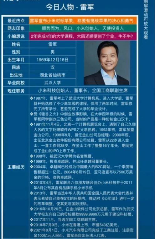 在2年内完成了4年的大学课程,第四年也开始创业,也成功了,你说这是一件好事吗?老实说,我觉得这很酷。然而,没想到雷军在大四毕业后还会创造出如此多的伟大成就,出乎意料,让人目瞪口呆。