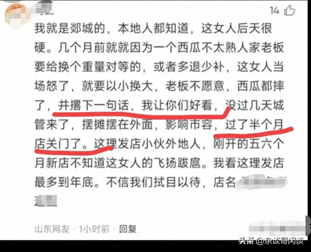 这位理发店老板显然感到很无奈,只是被迫继续发声。据一位当地网友透露,这名女公务员在当地拥有相当大的背景,因此养成了嚣张跋扈的性格,这也解释了她的行为。此外,大约一个月前,类似事件就发生过,当时的冲突对象是一个卖西瓜的小贩,结果是该小贩的摊位被关闭。这表明这位女公务员确实有相当的势力,能够横行无忌。