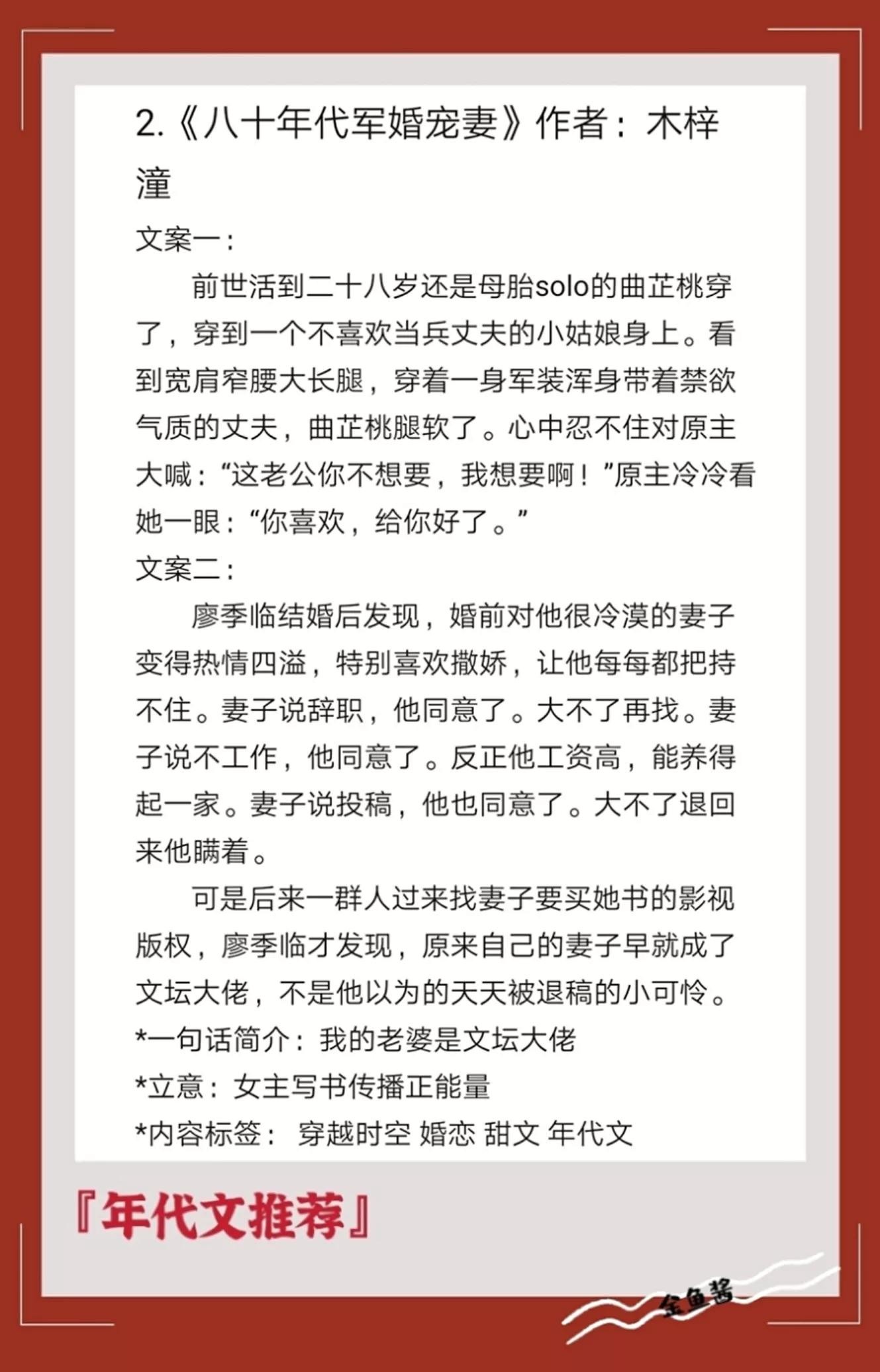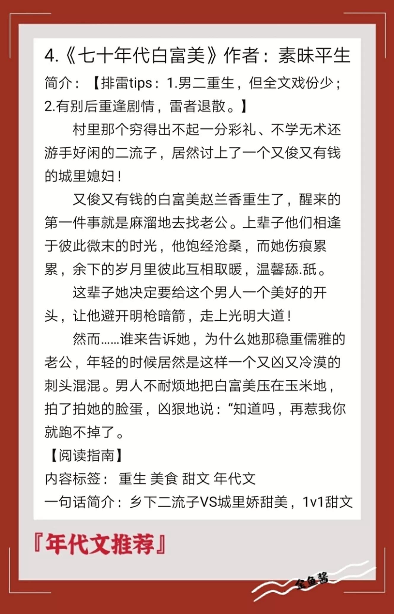 5本高分年代文,陪你一起柴米油盐、家长里短,温馨甜蜜日常♡
