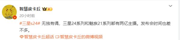 曝三星 24 系列和魅族 21 系列都有 2 亿主摄 或明年 1 月发