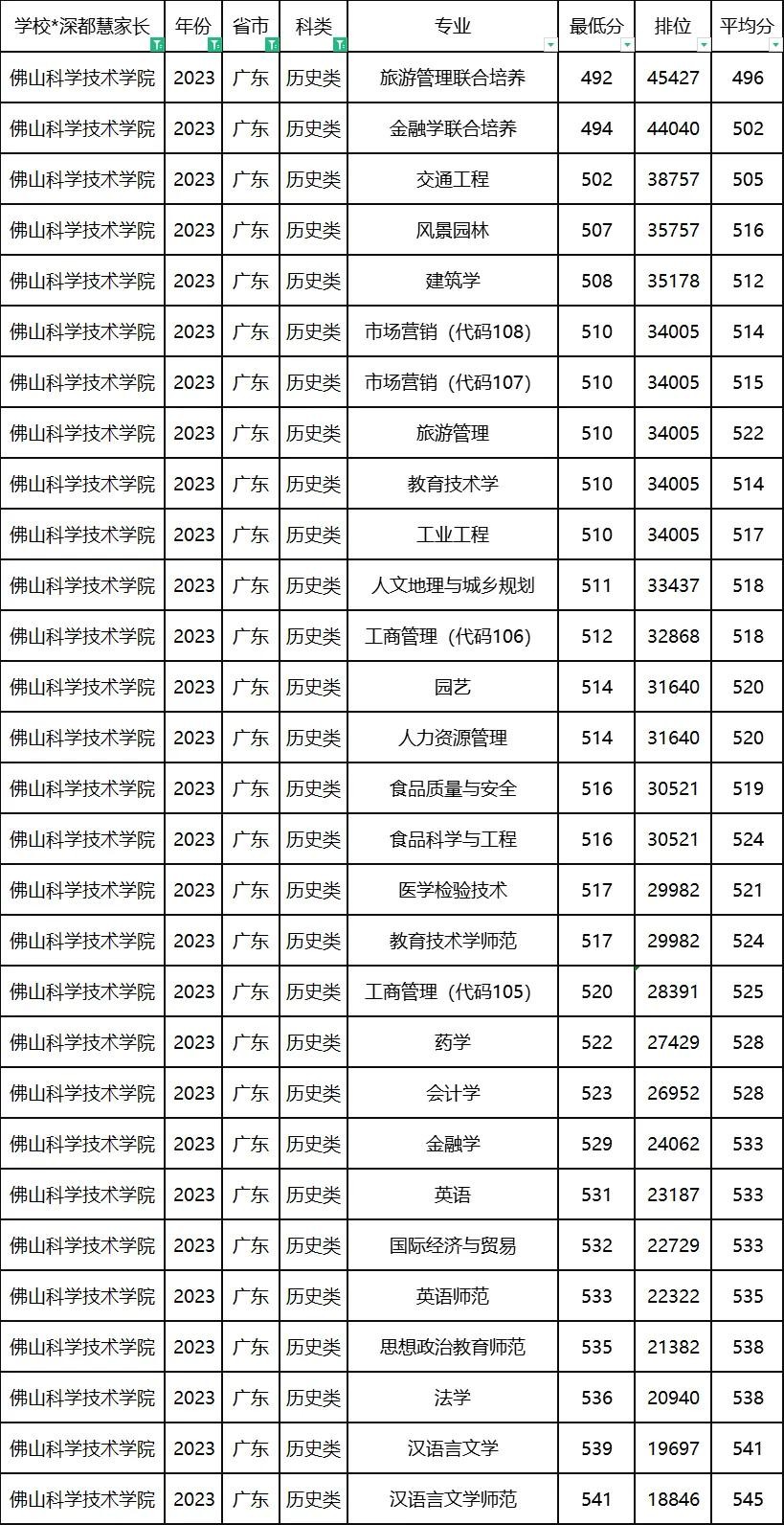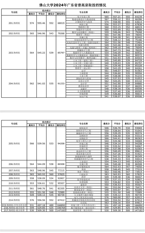 佛山大学2024年广东各专业录取分统计,分数大涨