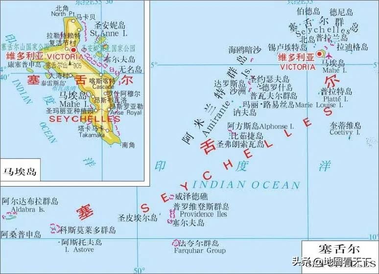 塞舌尔位于印度洋西部的群岛上,距非洲大陆1500公里,西南距马达加斯加900余公里,南与毛里求斯隔海相望,距印度2800多公里,由大小岛屿115个组成,主要分成两大部分:北方32个岛屿组成的马埃群岛多为花岗岩岛。南方83个人烟稀少的岛屿则为珊瑚岛。以马埃岛最大,面积148平方公里。全部岛屿分为4个岛群:马埃岛及其周围卫星岛;锡卢埃特岛和北岛;普拉斯兰岛群;弗里吉特岛及其附近礁屿。塞舌尔山为马埃岛上最高点,海拔905米。