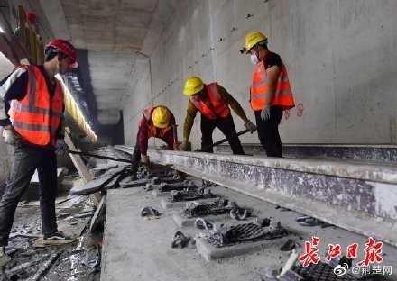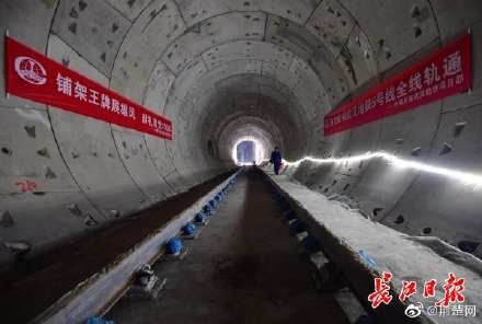 【武汉地铁5号线全线轨通】23日,伴随着自动铺轨焊接设备火花四溅,武汉地铁5号线武金堤公路站—复兴路站区间左线的最后一对25米轨排顺利连通,标志着武汉市首条自动驾驶地铁线路全线轨道贯通,为后续“电通”等工程节点目标顺利推进奠定了坚实基础。武汉地铁5号线工程线路全长35.2公里,南起南三环,北至武汉火车站,是武汉市首条全自动无人驾驶列车的地铁线路。全线共设站25座。5号线工程南北纵贯武昌全镇,布设在长江沿岸的重要客运交通走廊上,是武昌区域内第一条骨干线路。(长江日报)