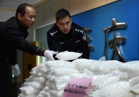 他们跟随了一辆大货车,其中基本满是海洛因、冰毒等产品,并且还直接突击了这家工厂,在仓库中发现了11吨的冰毒和上百公斤的海洛因,以及大量的制毒原料和各种器械。