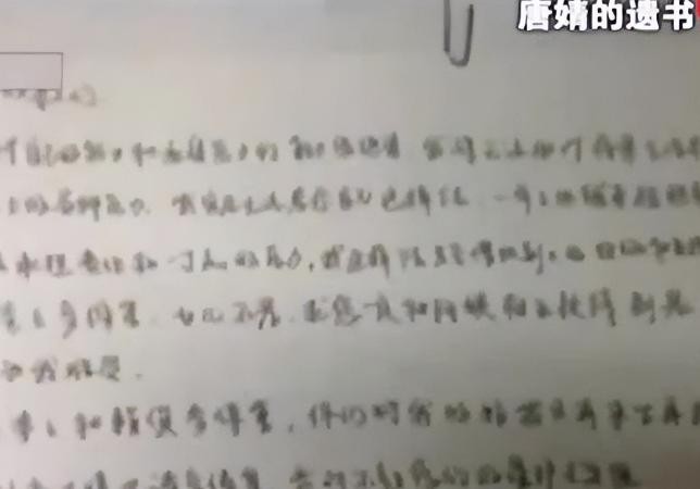 2012年5月在姐姐唐婕的忌日,唐婧给父亲打去了电话,她在电话中倾诉了自己最近的困扰,失眠、疲惫、对生活失去兴趣。