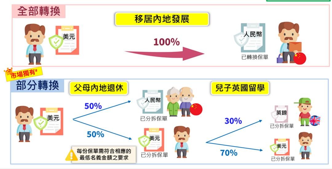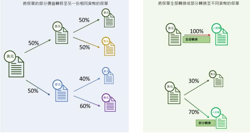 从保单的第二或第三个周年日起,客户可以在保单年度内自由地将保单价值转换为其他货币,既可以全部转换,也可以部分转换。这种灵活性让您能够轻松应对外汇需求的变动,且无需支付任何手续费。更为重要的是,转换后的保单价值仍将继续增长,助力您的财富持续扩大。
