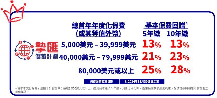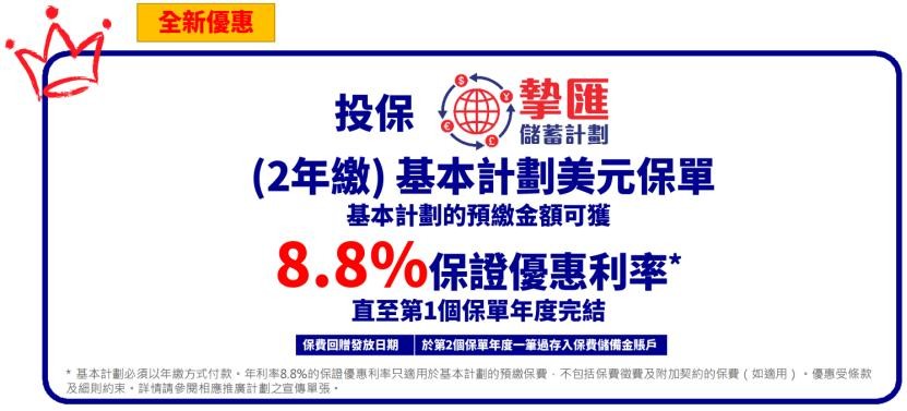 为了满足客户对短期缴费的需求,「挚汇」特别推出了2年缴费选项。缴费期限更短,回本速度更快,收益更高,限时发售至4月底。现在,您可以提前做好资金安排,一切尽在掌握。选择「挚汇」,让您的财务更加灵活便捷!限时优惠高达8.8%,满额即止。