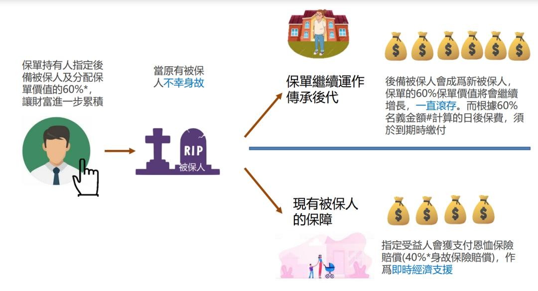 人生总是充满变数,为了让您的未来无忧,在第一个保单年度结束后,您可以选择将挚爱作为备用保单持有人,为您的保障增添一份安心。这样一来,即使意外发生,您的爱人也能继续享有保障,为您的人生保驾护航。