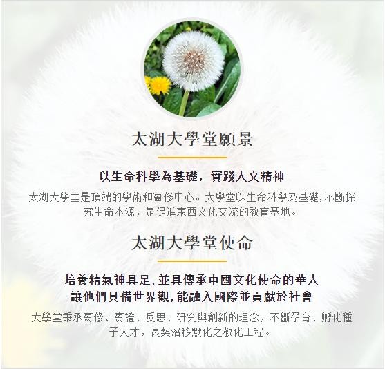 太湖大学堂是由南怀瑾先生倡议,李素美、李传洪姐弟携郭姮妟博士等人共同创办的教育基地。太湖大学堂始终致力于中国传统文化的拓展与传播,旗下附属吴江太湖国际实验学校,自创办十多年来,得到社会与教育界高度的认可。