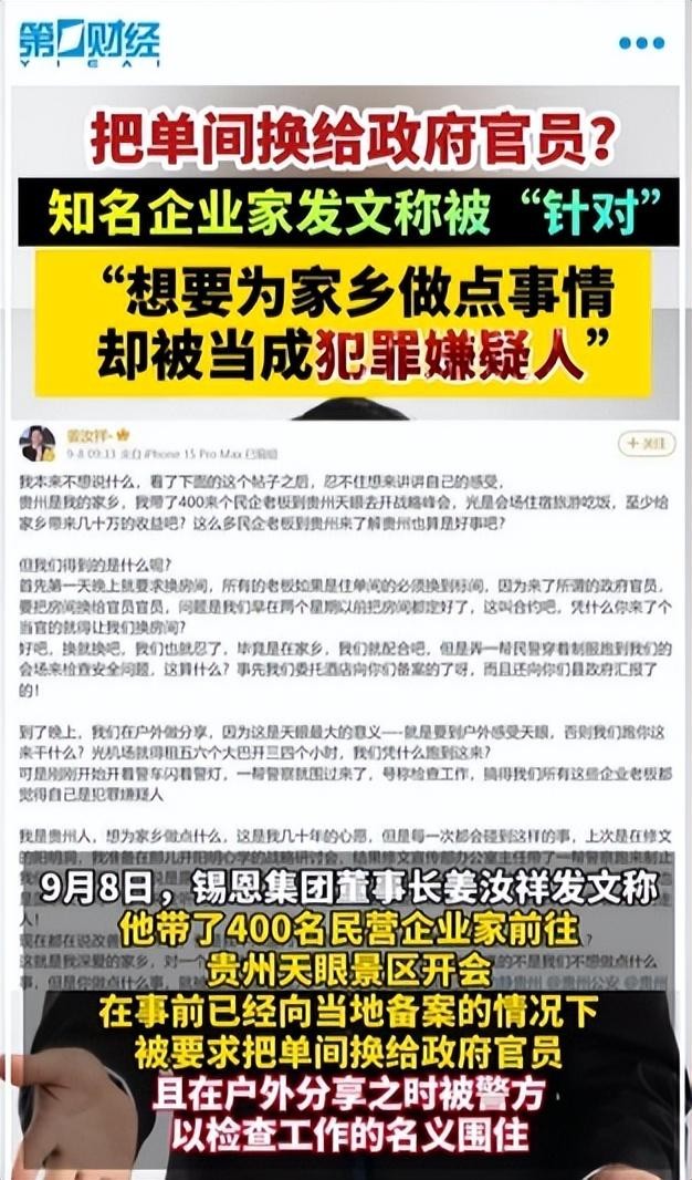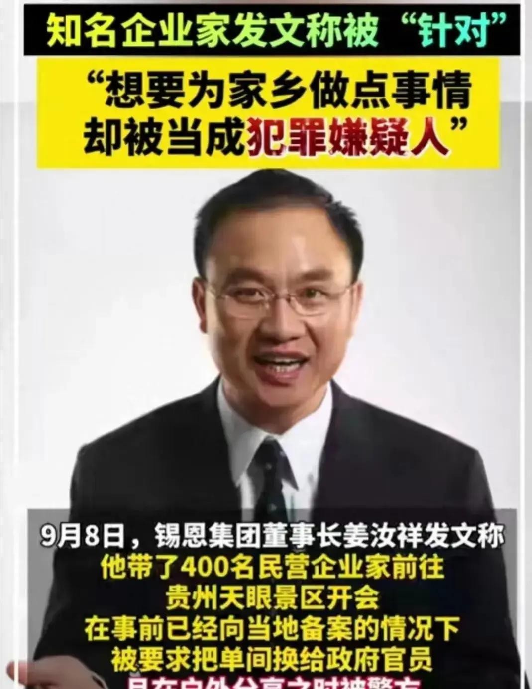事件的导火索是锡恩集团董事长姜汝祥带领400多位企业家前往“天眼”景区。