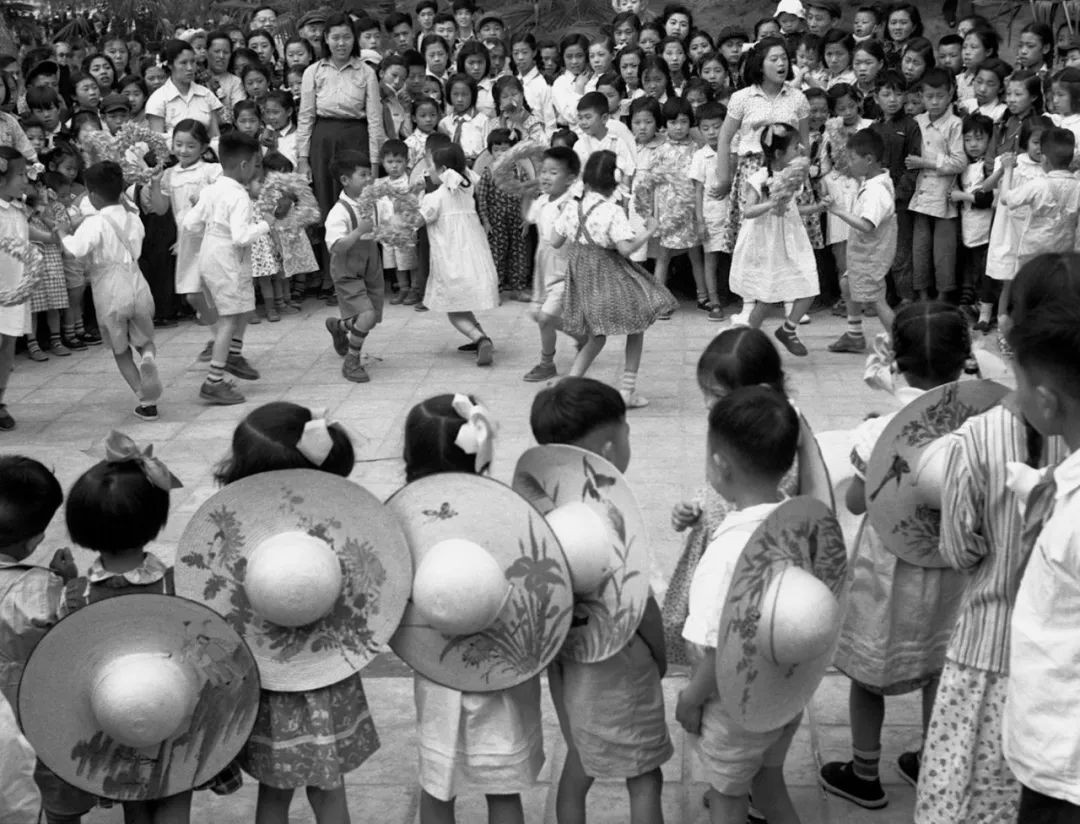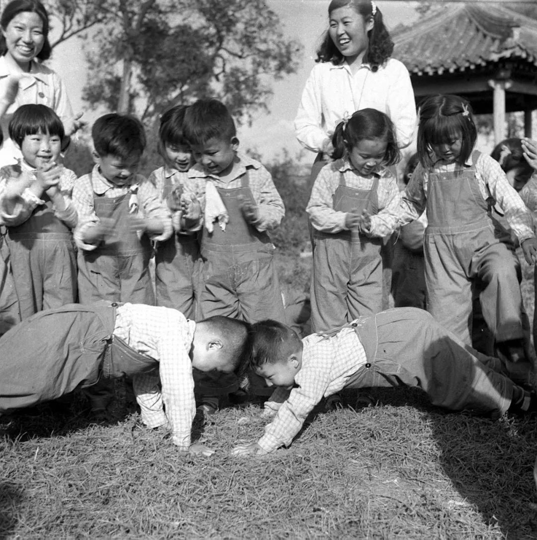 1950年6月1日,是新中国成立后的第一个“六一”国际儿童节。这是新华社托儿所的孩子们在户外做游戏。新华社记者 齐观山 摄(资料照片)
