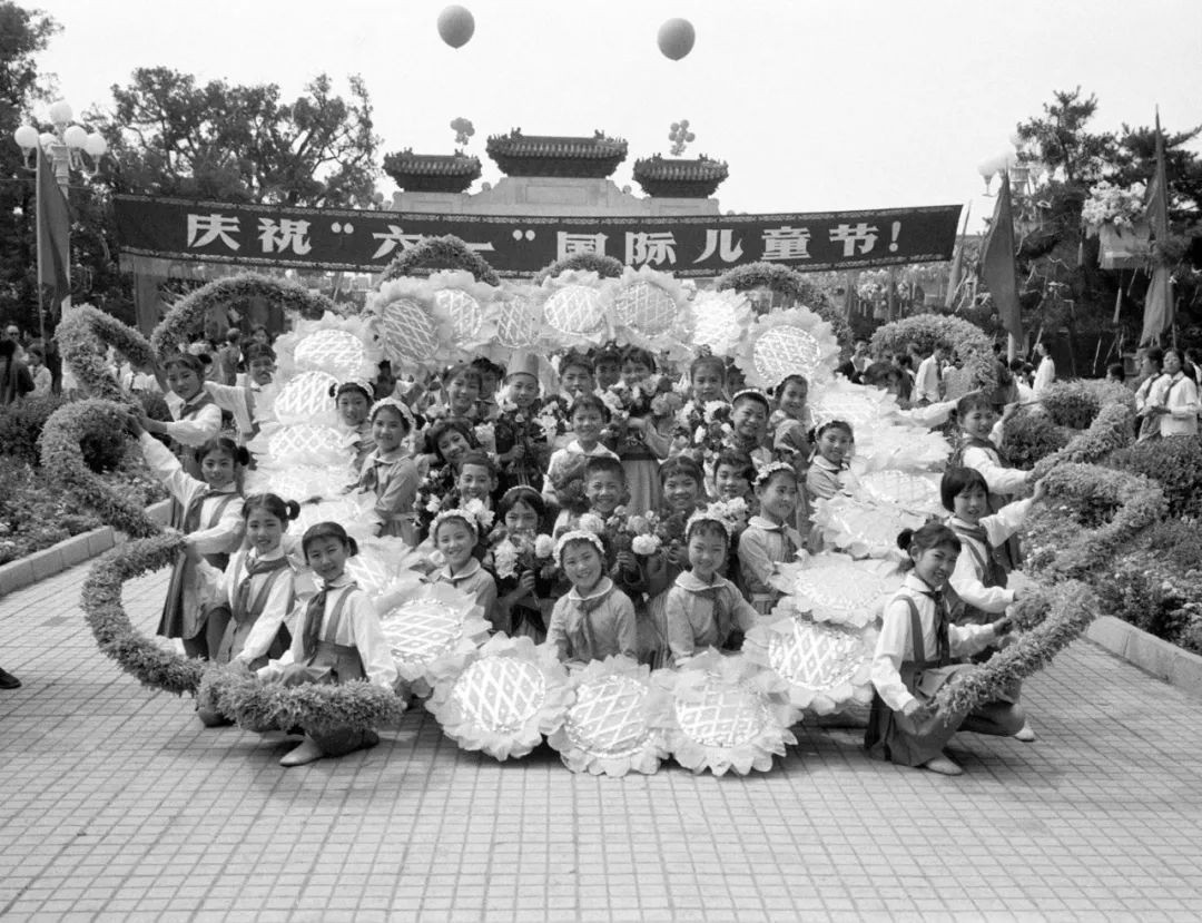 小朋友在北京景山公园举行游园联欢活动,庆祝六一国际儿童节(1980年6月1日摄)。新华社记者 顾德华 摄