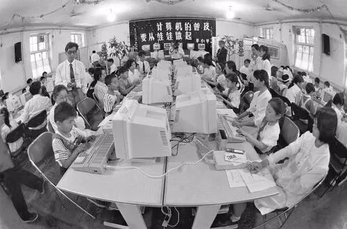 全国第五届“六一”儿童节学习机表演赛北京赛区在北京青少年科技馆拉开战幕,共有8000多名3至12岁少年儿童参赛(1994年5月27日摄)。新华社 韩晓华 摄