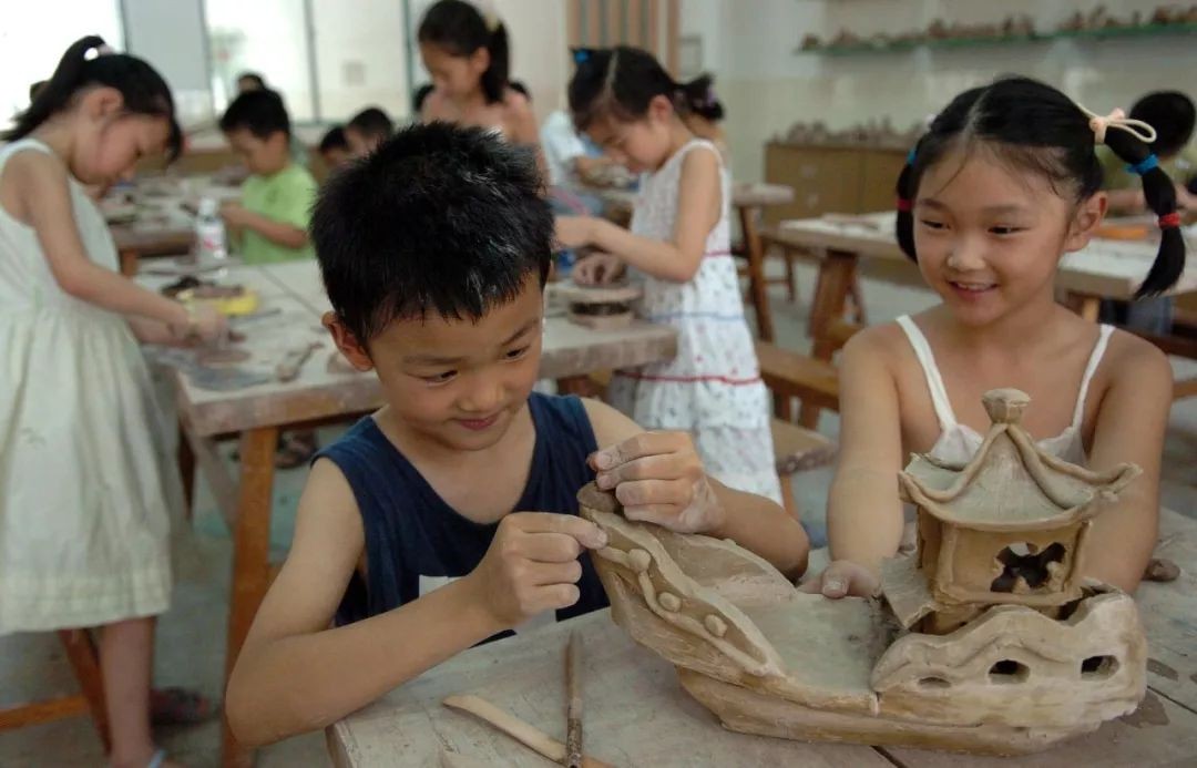 孩子们在南京玄武少年宫学习陶艺(2004年7月22日摄)。新华社记者 徐澎 摄