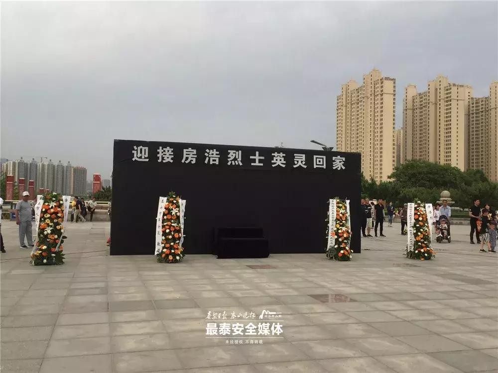 2019年5月24日下午,高铁泰安站广场异常肃穆。下午18时48分,载着房浩烈士骨灰的G1856次列车准点缓缓将驶入高铁泰安站。广场上,党政军群各界人士怀着无比沉重的心情,自发聚集到高铁泰安站广场,迎接英雄魂归故里。