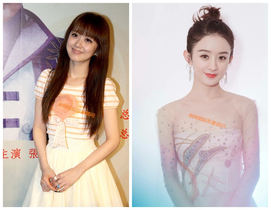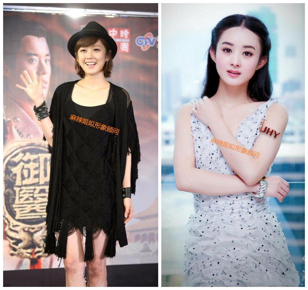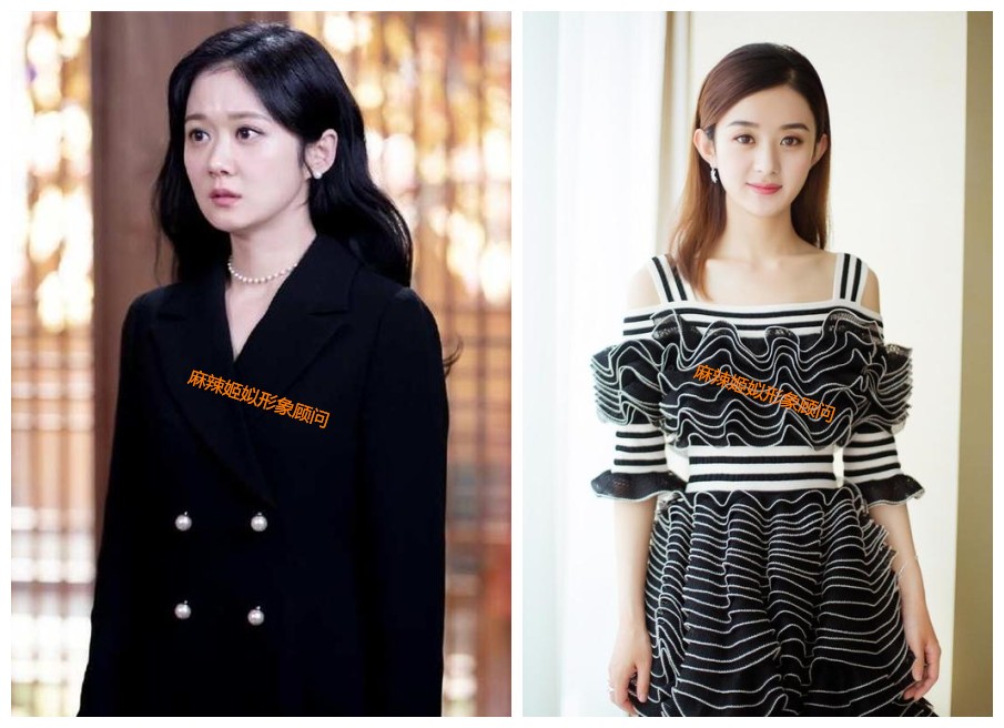 随着年纪的增长,我们的甜美是穿衣风格带来的还是色彩特征带来的,当你的胶原蛋白开始消失的时候,在你的穿搭中,会很明显地呈现出来,看看下图这一组整体穿搭,左图整体穿搭还可以的张娜拉与右图整体穿搭也还可以的赵丽颖,是不是张娜拉要大气得多,其实这两人实际身高是一样的,但看起来还是张娜拉要高大?