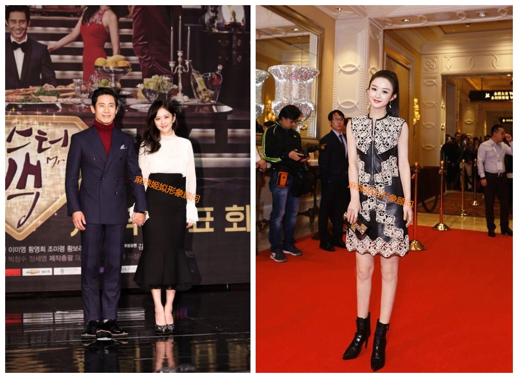 而这一组穿搭,虽然还是半身穿搭,但很显然,这两人的整体穿搭,我们还是很明显地看出来差异,张娜拉比赵丽颖要大气得多,也要亲切得多,而赵丽颖比张娜拉要小巧,并且要精致得多,也要遥远得多?