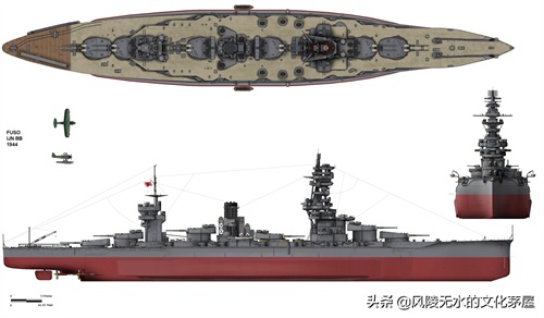 1944年,最后定型的“扶桑号”战列舰各方位视图
