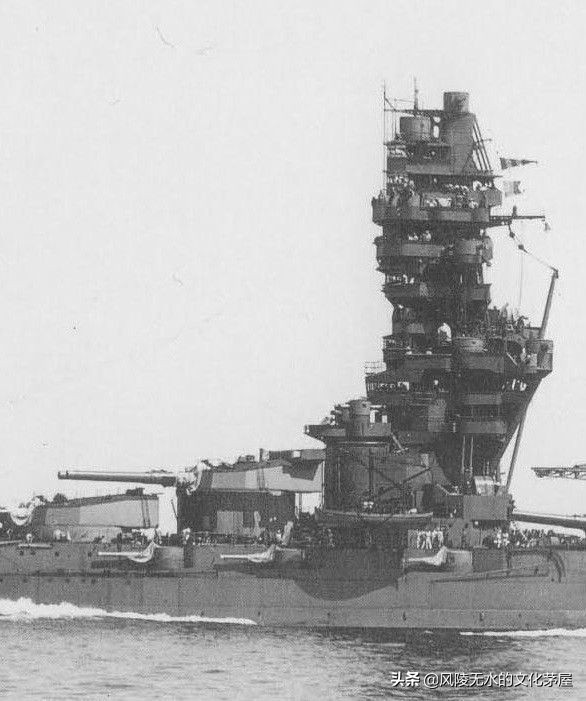 此时“扶桑号”特色的“塔式主桅”已基本定型(尚有雷达设备未安装),这座15层的建筑因其似小孩堆砌的不规则积木被后人戏称为最强“海上违章建筑”,但它也见证了国土狭小和物资匮乏的日本追求海权强国的艰辛历程。