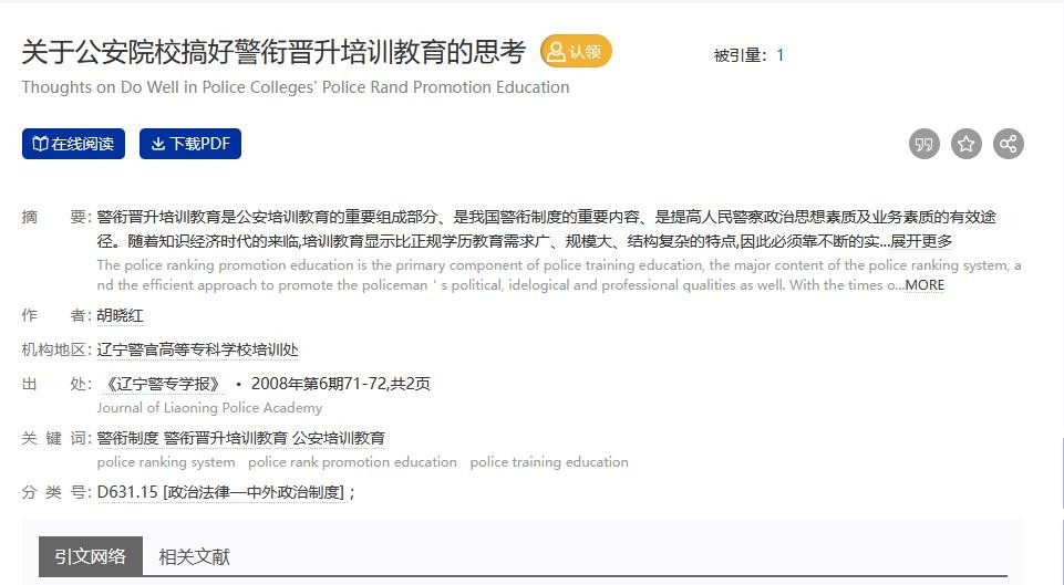 参考资料:[1]胡晓红.关于公安院校搞好警衔晋升培训教育的思考[J].辽宁警专学报,2008,10(6):71-72