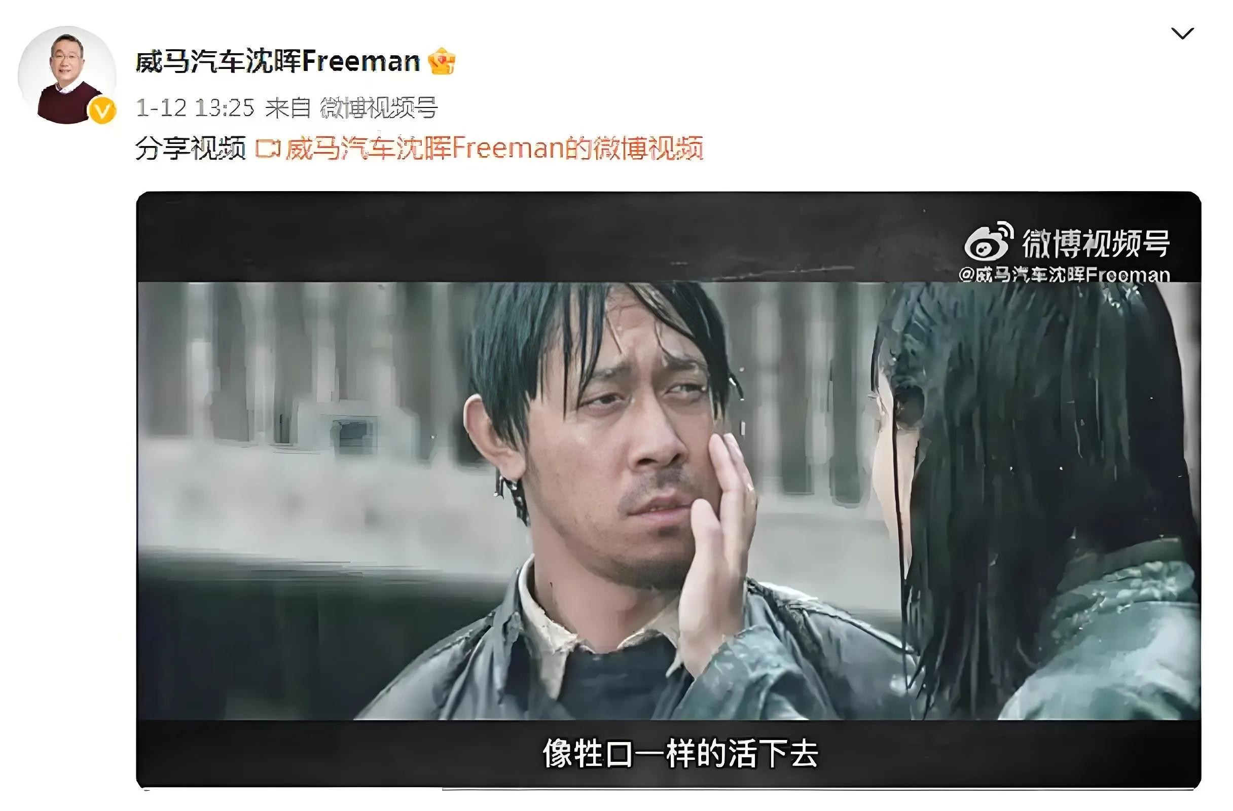 23年1月12日,沈晖发布了一条微博视频,字幕写到: