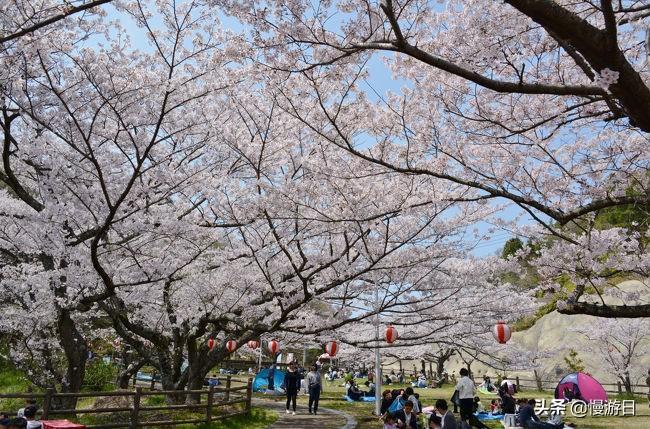 摄津峡公园是日本亲子郊游、露营的人气地,园内的“樱花广场”种有上千棵樱花树。