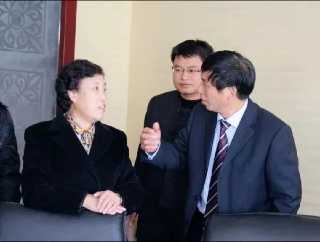图为沈浩在大寨参观学习时与郭凤莲亲切交谈