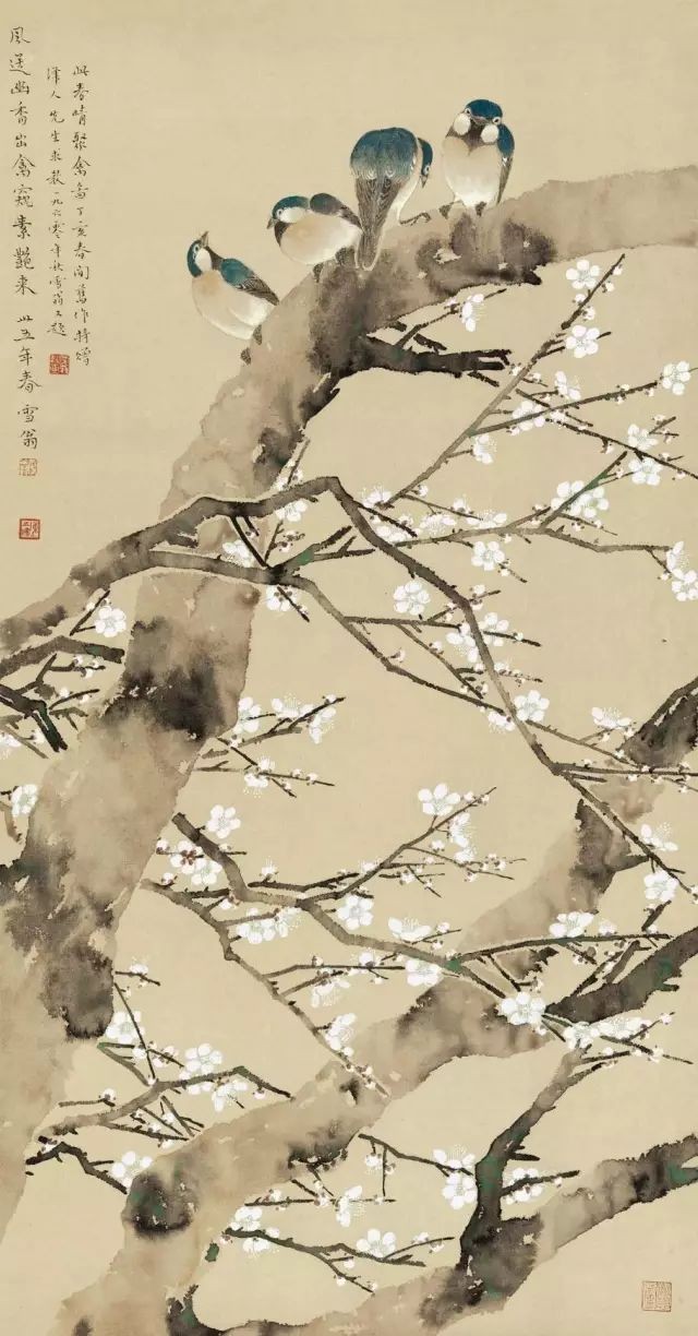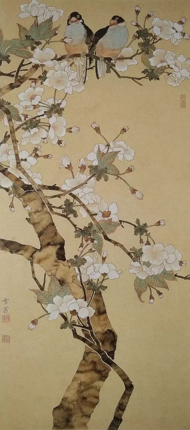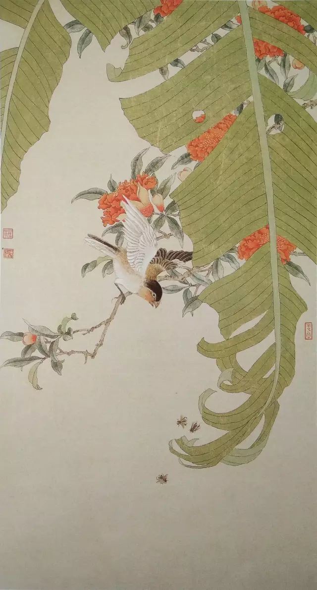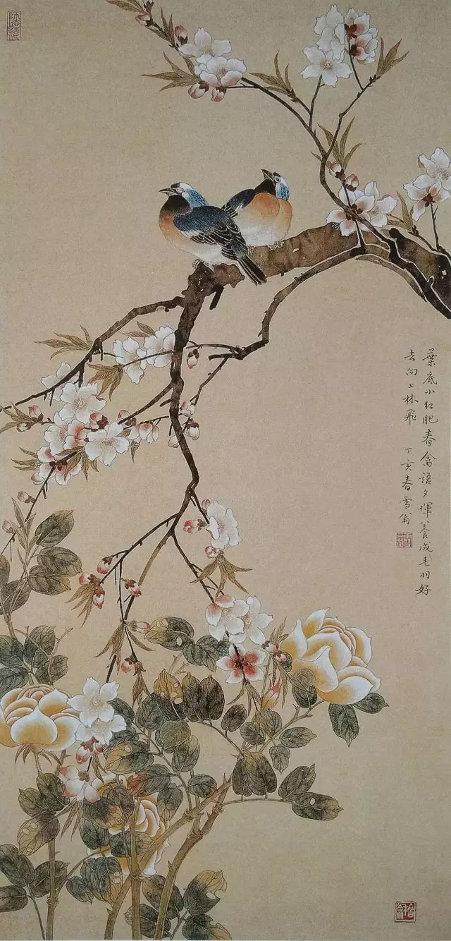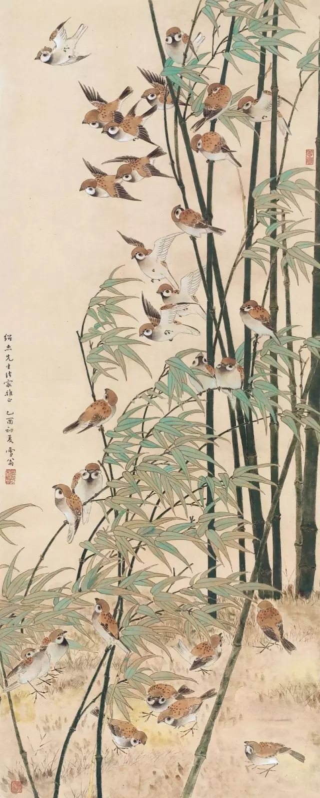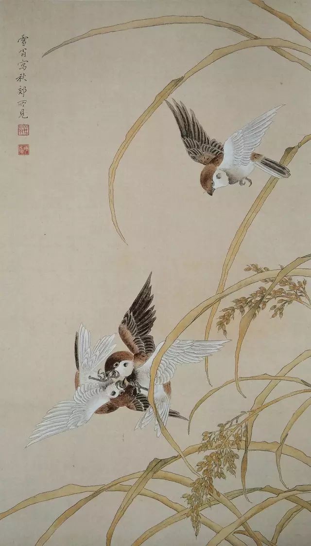 陈之佛作为一位杰出的工笔花鸟画家,他通过融合与创新,继承和发展了中国传统绘画艺术,形成了唯美诗意、生动雅致的个人艺术风格,使工笔花鸟画创作呈现出了新的时代风貌。陈之佛在继承传统工笔画的同时,将平常鸟类的生态之美更提升到了一个高度。如麻雀这种生活中普通的鸟类就经常出现在陈之佛的笔下,陈之佛的工笔花鸟画特别重视运用色调来传达画面的整体情调,其绘画传达的意境更关乎自然与生命,体现的是一种基于真情实感的美妙诗意。