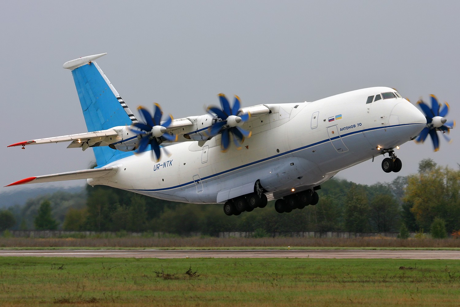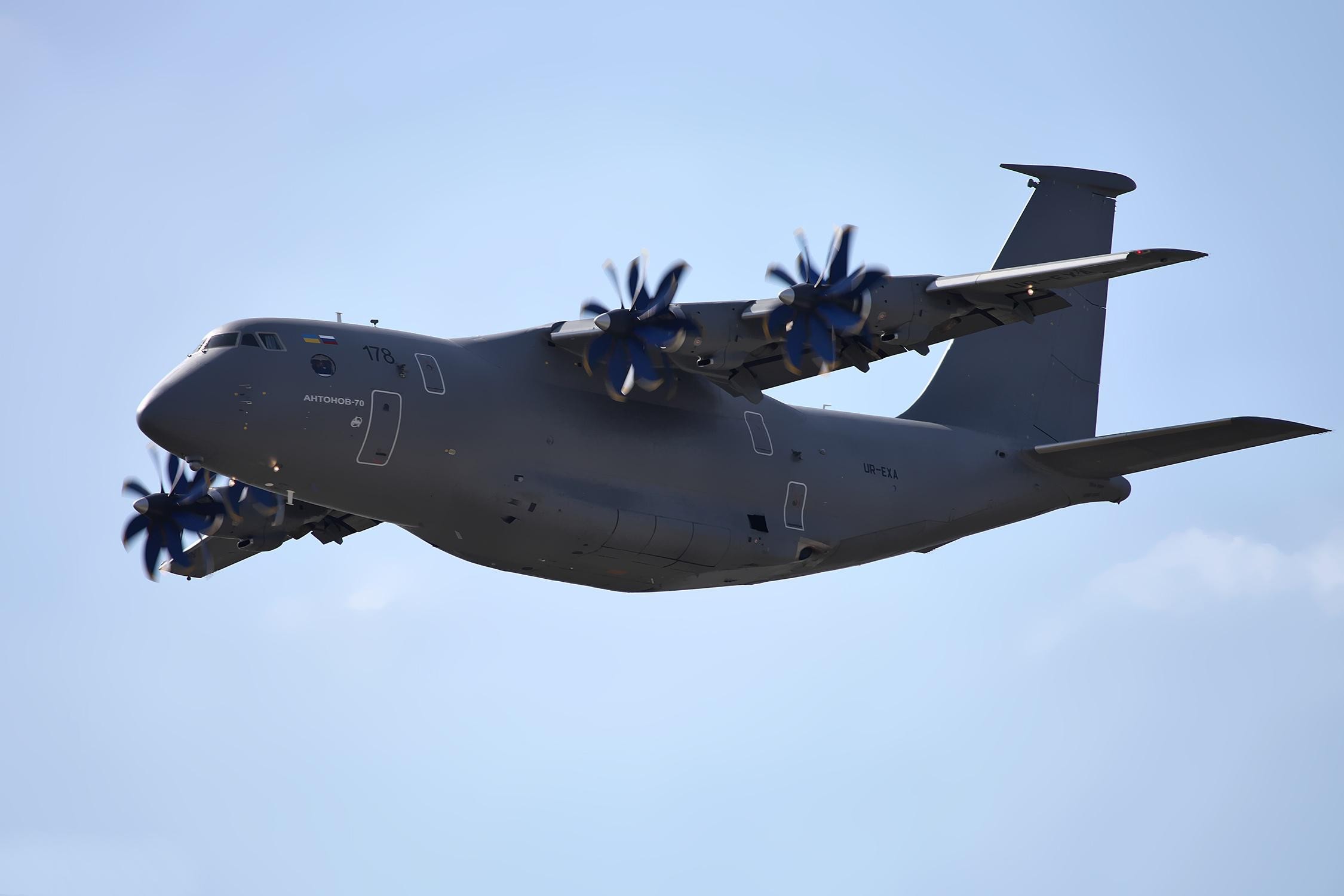 1996年,俄罗斯和乌克兰签署了一项协议,决定共同继续安70项目,并计划分别采购164架和65架。1997年4月,第二架原型机在基辅首飞成功。1998年,该机在巴黎航展上进行了飞行表演,引起了国际社会的关注。2000年,该机在试飞中创造了起飞重量为100~150吨级别的涡轮螺旋桨运输机的6项世界记录。2001年,该机在乌克兰获得了民用适航证书。