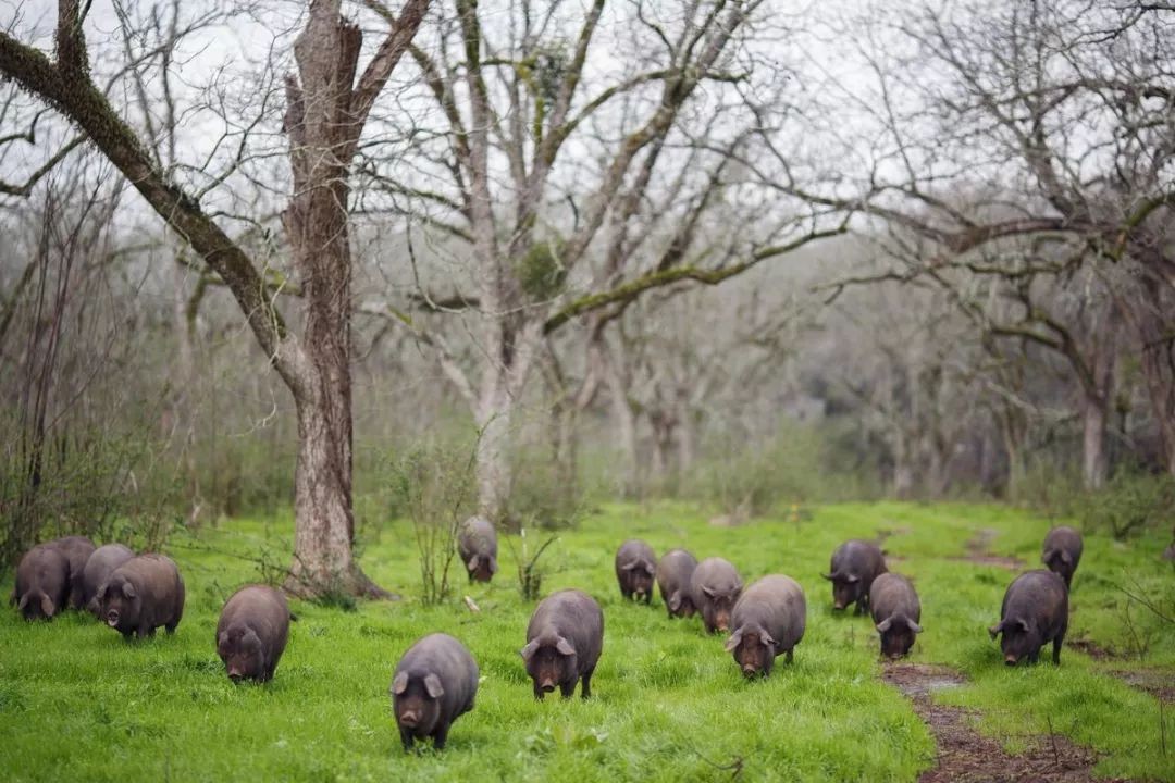 其实在西班牙,白猪的比例大约占全部猪只的八成数量。除了伊比利亚猪外,西班牙常见的猪只还有花斑猪、皮特兰猪和杜洛克猪等白猪品种,一样能产出肉质甜美、营养丰富的猪肉,性价比也比较高。