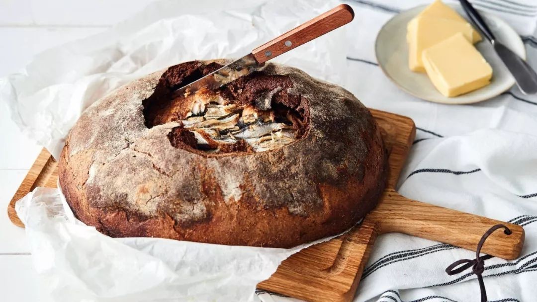 另外,由于用酸面团做成的黑麦面包是芬兰人的主食,所以芬兰有一种传统食物叫鱼馅饼Kalakukko,是用黑麦面包包裹着以白鳟鱼,猪肉和土豆混合内馅而组成。