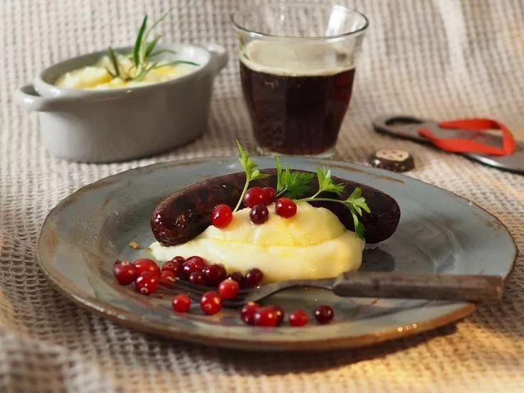 还有以猪血混合米饭制成的血肠Ryynimakkara,吃起来是软软糯糯,搭配北欧越橘酱食用,风味独特。