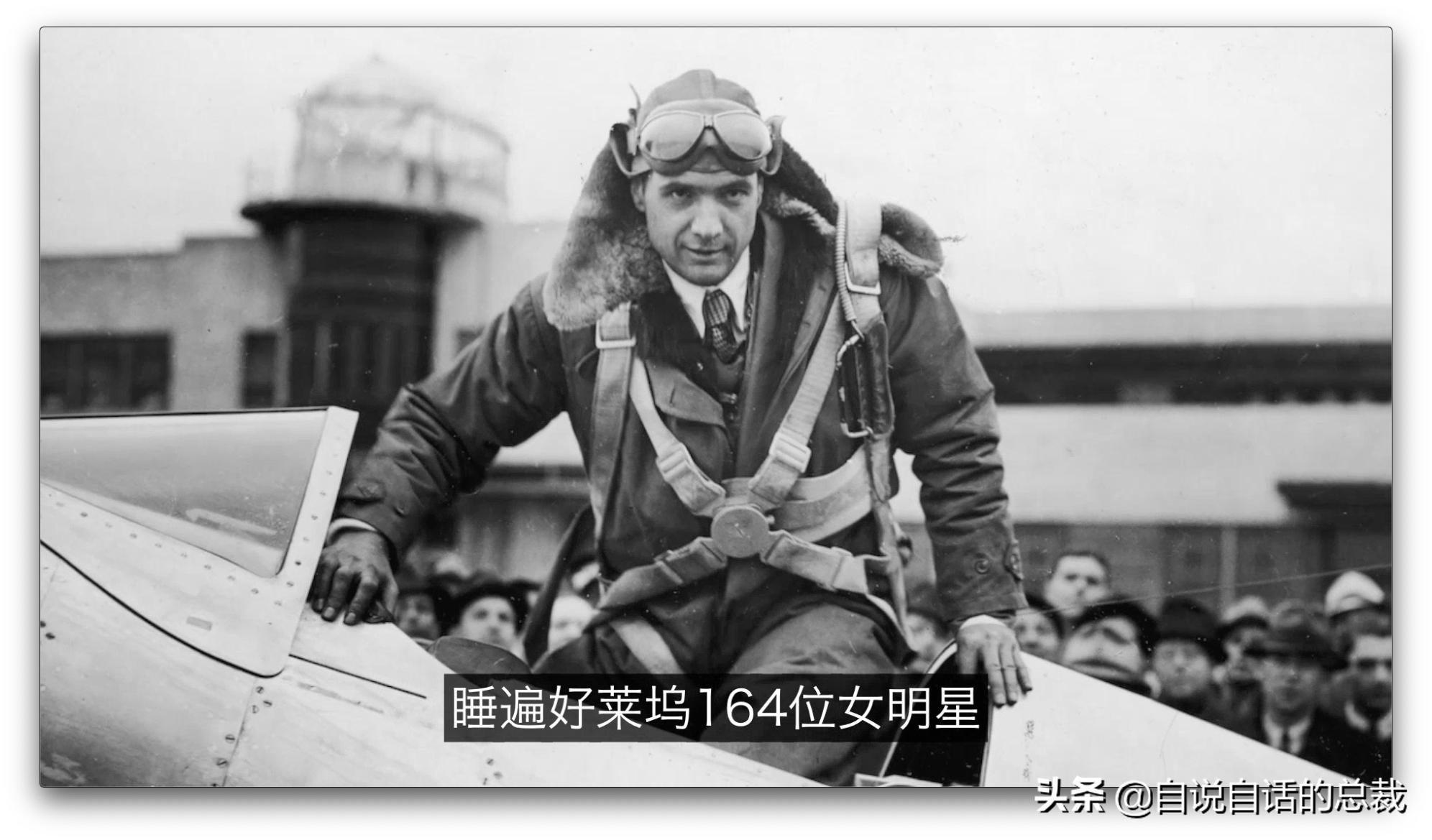 美国历史上第一个亿万富豪,睡遍好莱坞164位女明星,他的公司造出了第一颗同步卫星、第一个登月器,他曾经驾驶最快的飞机创造过人类的速度记录,也驾驶飞得最高的飞机横穿纳粹德国,并用91小时刷新环球飞行的记录。