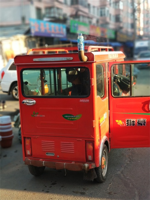 逛完早市四个人挤上了一辆自带暖气的三蹦子,真是Q到极致,而且这货的起步价比正规出 租车 还贵,但是胜在体积小又经常肆意闯红灯之类的再加上 哈尔滨 真的是非常非常容易堵车,所以三蹦子比出 租车 要快很多,司机大哥的技术很叼,只是坐在车里总有要完蛋的感觉,还是有点儿危险的。