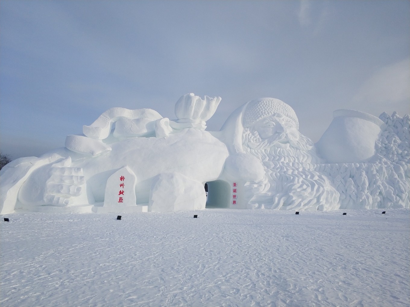 到 漠河 直接去的 北极 村,之前联系好的包车师傅, 北极 村包括北红村消费都比较贵,不过因为是在景区里也算可以接受,基本上四个人吃一顿饭至少也要200往上了。从 北极 村去了圣诞村,路过圣诞滑雪场,看了一眼,收费倒不是很贵但对滑雪没什么兴趣就溜达了溜达,圣诞村也是一个人造的小景点,有一些雪雕,圣诞老人,雪屋之类的,比较特别的是专门有一个外国人扮演圣诞老人跟游客合影,关键是免费的,这个真是比较出乎意料。 北极 村里也有一些正在建造的冰雕雪雕,晚上去玩儿了一个还未完工的冰滑梯,也算是稍微弥补了一下 哈尔滨 没去冰雪大世界的大冰滑梯的遗憾。