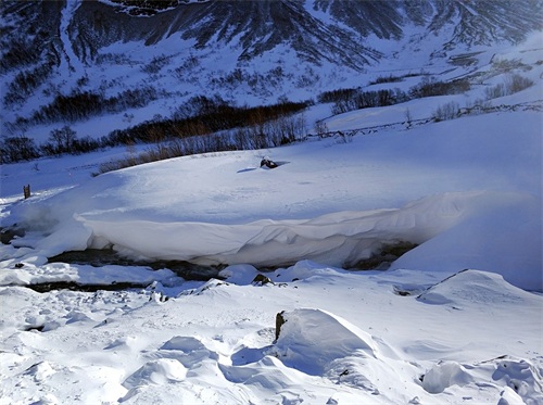 冬天的 长白山 其实也是看雪景,瀑布大部分已经冻上了,流量很小,但是因为下面有一块温泉地,腾起的雾气也是一景,至少也可以感受一下吴淞是怎么形成的,然后下山最后一站是“地下森林”,名字真是超级俗气啊,差点因为这个名字就舍去这一站了,是一条木栈道一直到谷底,山里的雪真是厚,很多地方的积雪都能到腰的位置,皑皑白雪在横七竖八的树干和枝条上堆出各种形状,阳光再从树林里的缝隙斜斜的照过来,谷底还有一条没有结冰的小河穿过,真是宛若童话世界,漂亮极了,感觉上 白山 里最值得景点就是这个名字俗气的要死的“地下森林”了,值回票价。