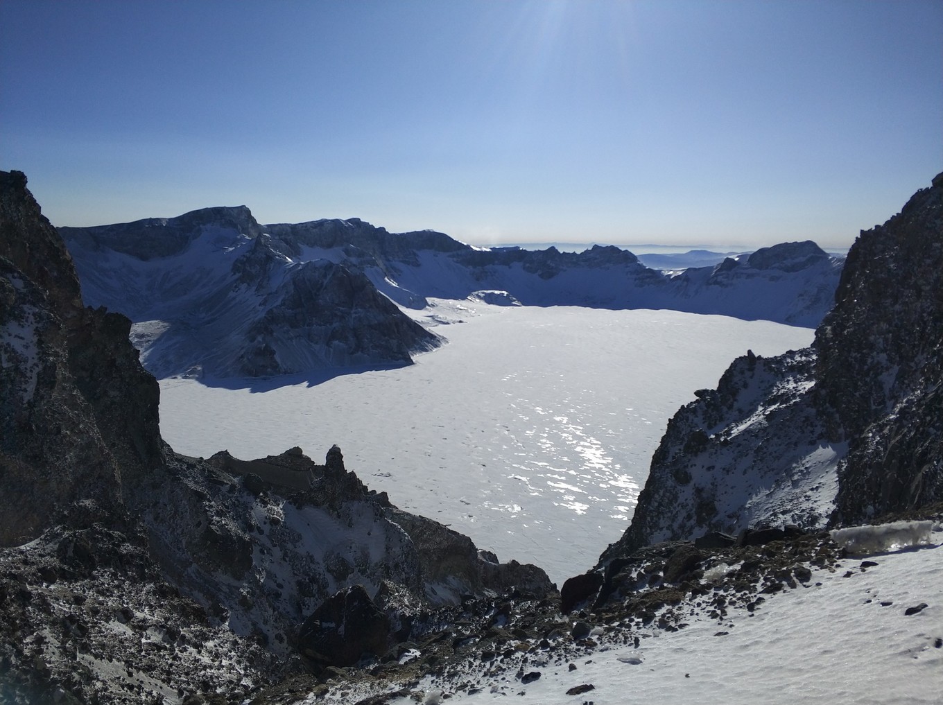 休整一晚第二天准备进 长白山 景区,联票215不算贵但也不算便宜,因为上天池还要额外支付80元的越野车费用,但是那天天气真是特别好,万里无云,风也不是特别大,所以也是有幸在冬天看到了 长白山 天池的全貌,据说因为天气原因冬天能看到天池的几率也就不到三分之一的样子。但是说实话也确实没啥好看的,山顶上还是挺冷的,越野车要在绕山公路上开大概半个小时左右,寒风刺骨,冬天的天池就是一个大雪坑,想看那一汪碧波的还是夏天来吧,因为冬天积雪的原因本来可以绕天池走两步的环形步桥也封了一大半,所以只是匆匆看了一眼就坐车下山了。就像出 租车 司机说的:“ 长白山 这地方属于不来后悔一辈子,来了一辈子后悔!”也不无道理。