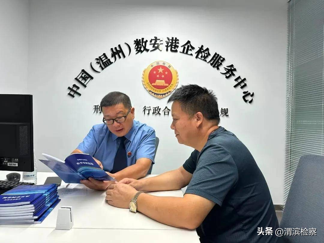 2024年8月22日,浙江省温州市瓯海区某建材企业负责人到数安港企检服务中心进行法律咨询,数据资源检察室检察官对其释法说理。